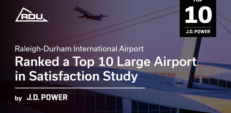 J.D. Power has ranked RDU 9th among large airports in its 2020 North America Airport Satisfaction Study. This is the second year in a row RDU has ranked among J.D. Power’s Top Ten. The study measures overall traveler satisfaction with mega, large and medium North American airports by examining six factors in order of importance: